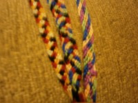 | Druhou modrou bavlnkou uděláme 3 uzlíky vpravo a máme hotovou celou jednu, respektive dvě řady náramku. | |